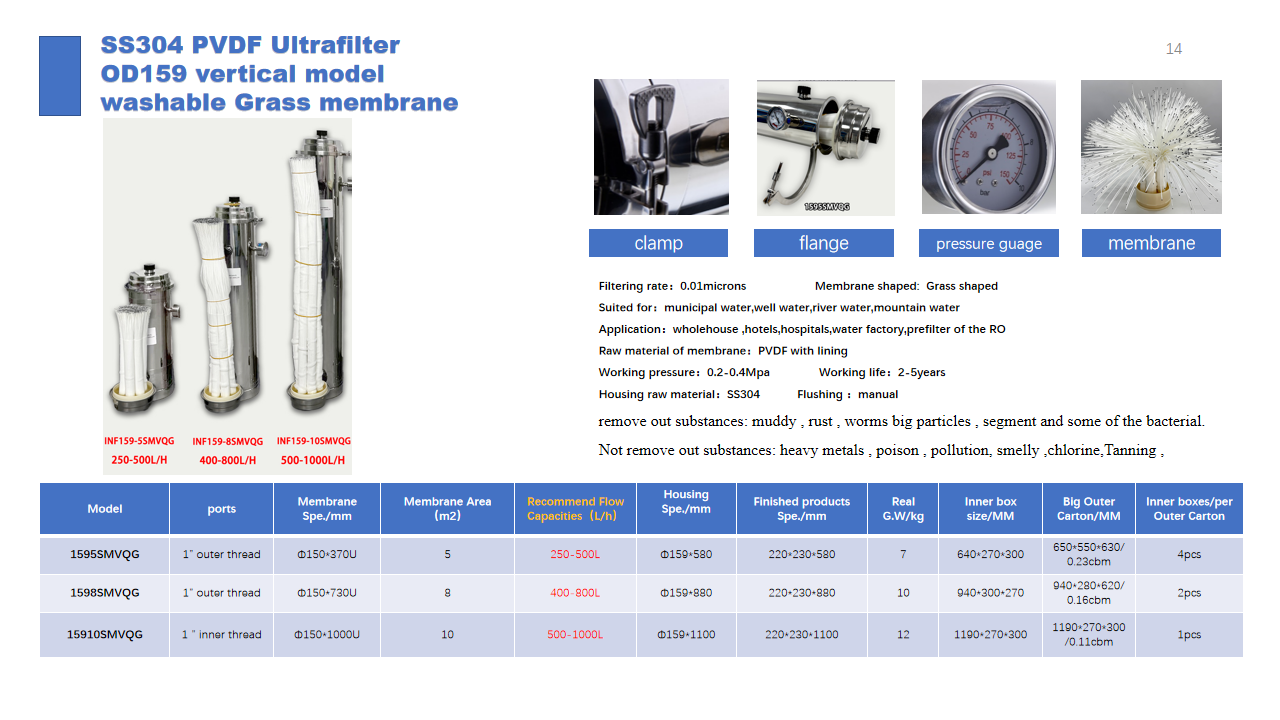 159-5SMVQG Vertical flange Grass membrane Ultrafilter OEM/ODM